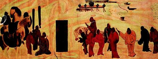 Vicino al sito delle tombe, nelle Grotte di Mogao (Tun-Huang), un gran numero di cavalli maculati appaiono in una magnifica serie di murales e data alla dinastia Tang.