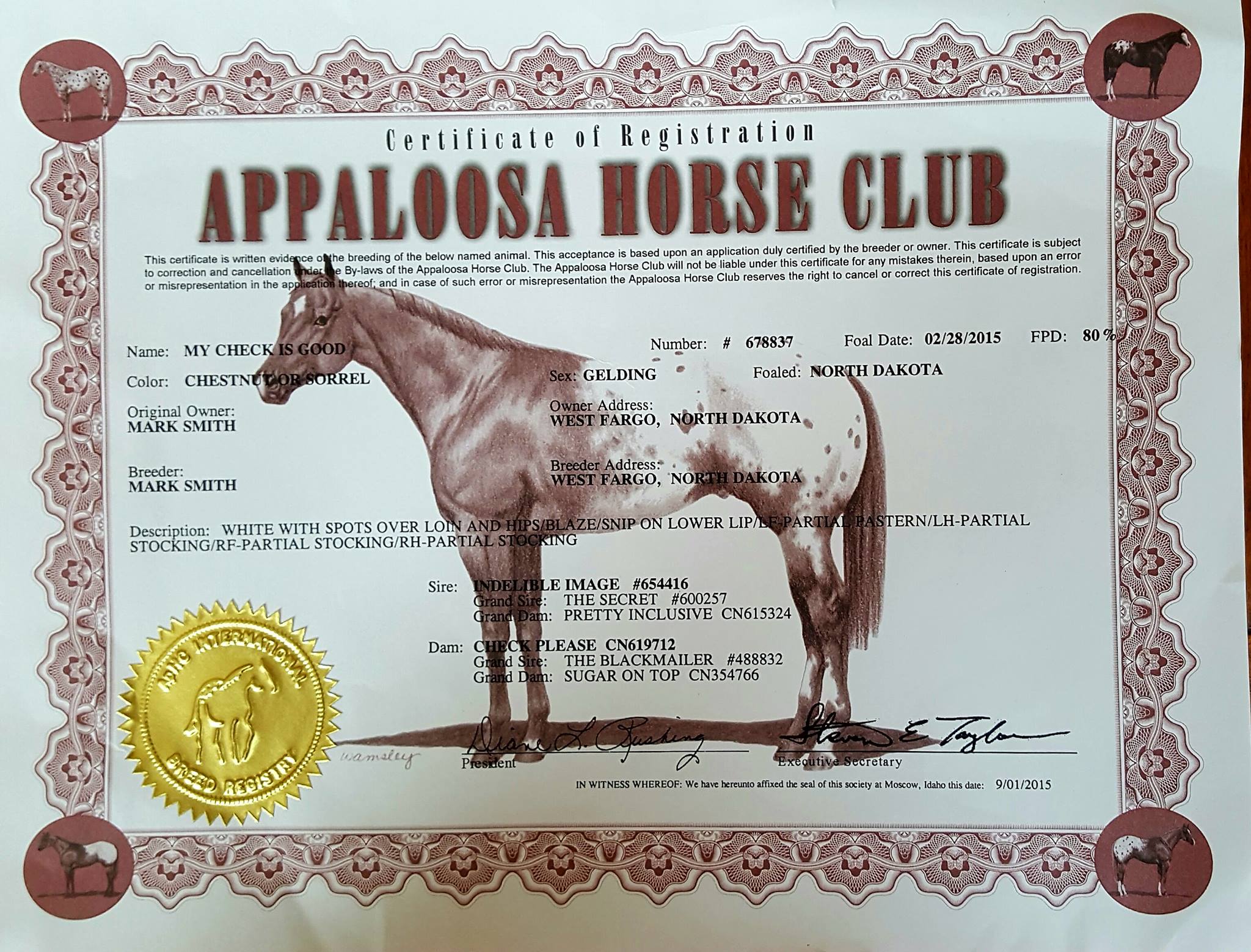 MY CHECK IS GOOD 2015 “silver mane” APPALOOSA