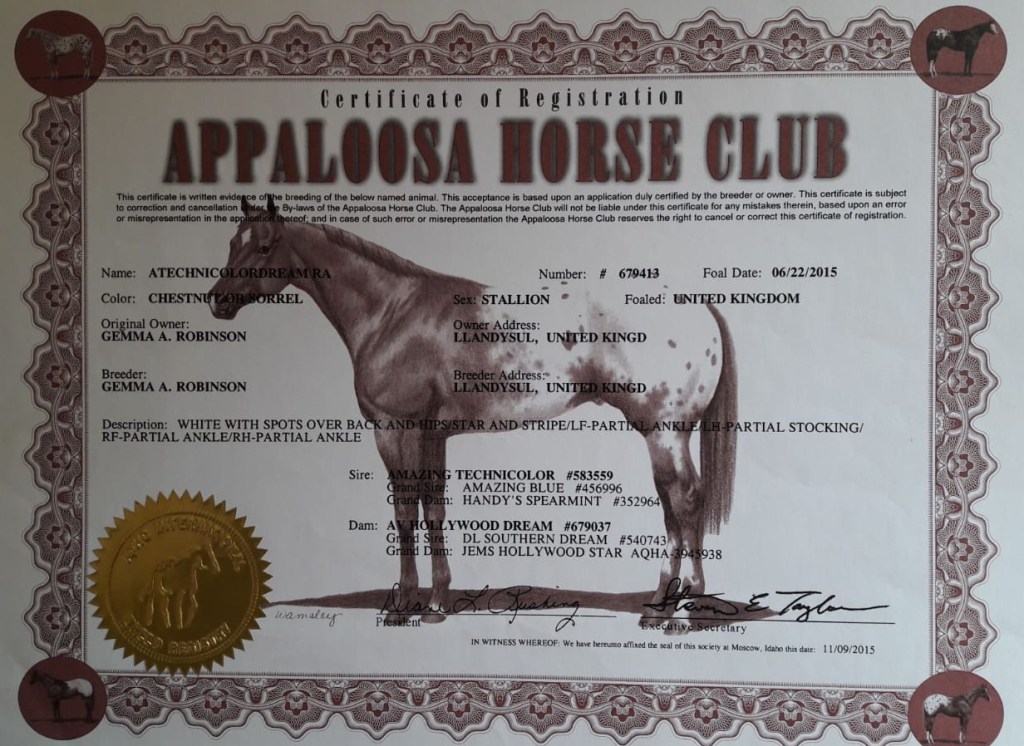 | Sire ATECHNICOLORDREAM RA 2015 APPALOOSA ![]() | By AMAZING TECHNICOLOR blk 15.2H 1999 APPALOOSA ![]() |
