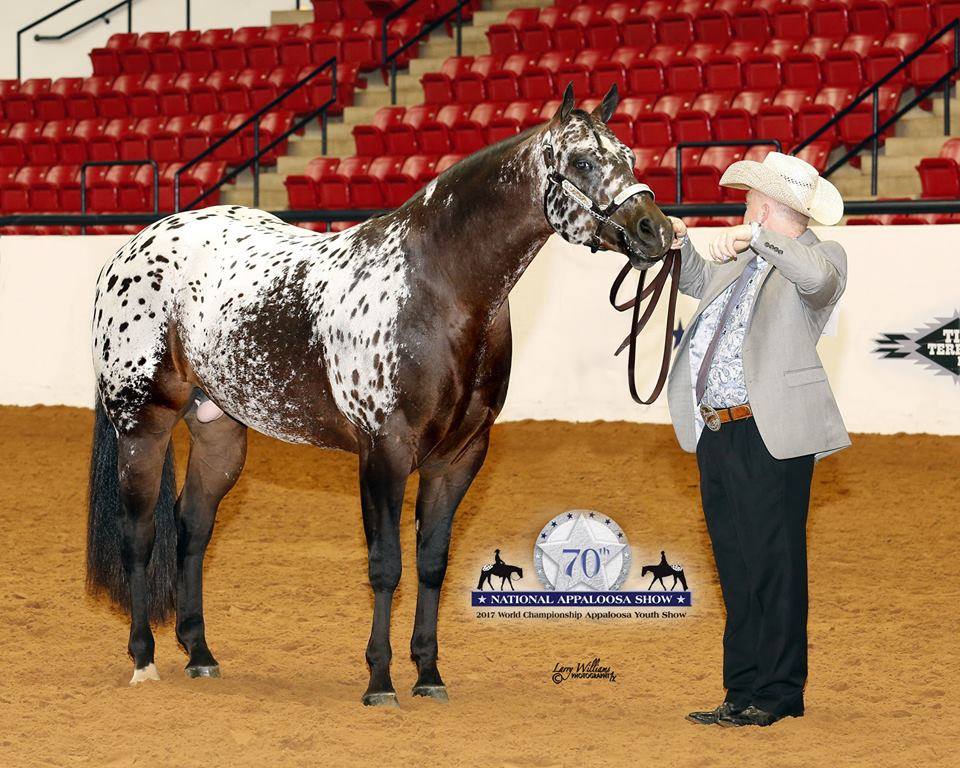 | Dam MS DREAM DESIGNER ![]() ch spotted body blanket 2008 APPALOOSA World an Reserve World Champion 2011 | Ex TRUE DAY DREAM APPALOOSA Granddaughter of DREAMERS FANCY ![]() 16 hh & 1350 lbs. World & Nat’l Ch. Sire Grand & Res. Ch. Halter; 48 Halter points #23 on the 2000 Leading ApHC Halter Sire List |