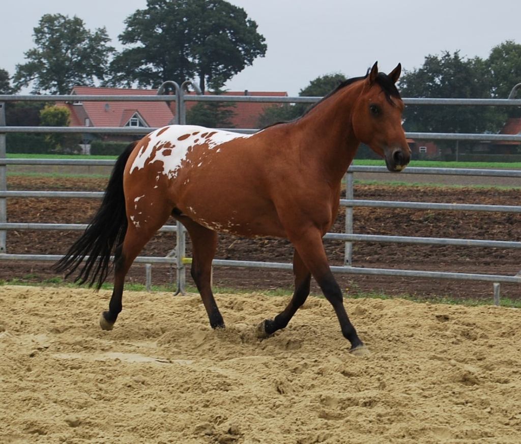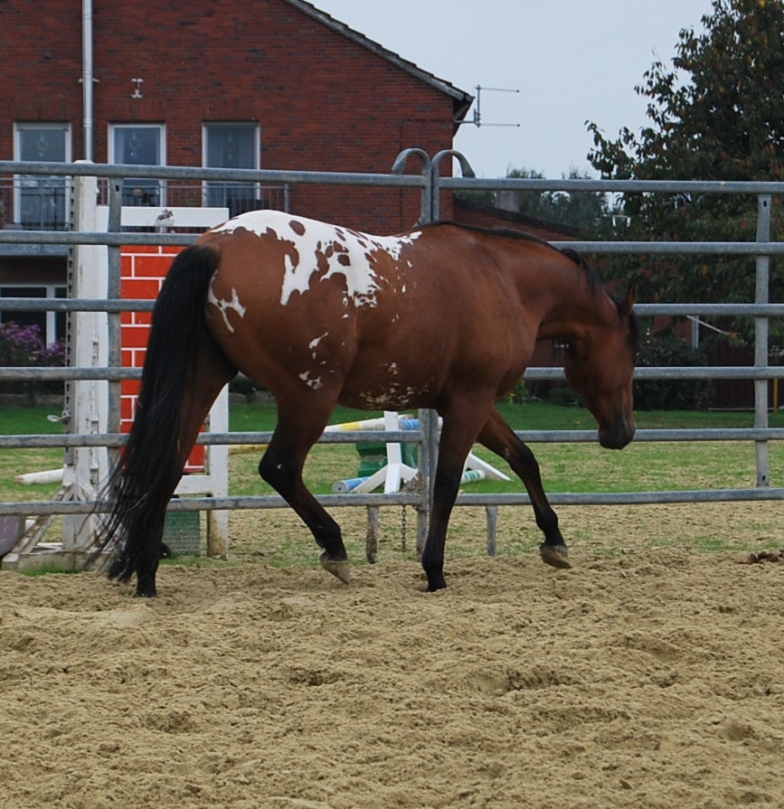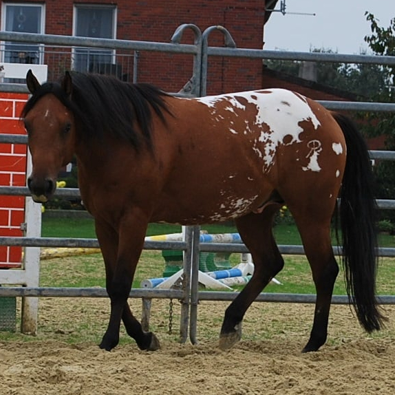 | Ex MS HOLLYWOOD JACK dun 1992 APPALOOSA ApHC# 512972 NRHA #512274 5X World Reining Champion. NRHA Bronze winner. NRHA earnings – $2,217.84. Owned by Cynthia Soucie. 1999 ApHC World Champion Sr. Reining & Freestyle Reining // ApHC National Points – Non – Pro Reining 5.0 points / Open Senior Reining 27.0 points / Freestyle Reining PSSM1 n/n, MH n/n By HOLLYWOOD DUN IT ![]() | |