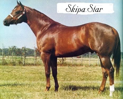 | Dam GENUINE GOLD ROLEX ch 2005 QUARTER HORSEAQHA #4686865 | Ex SKIPA STARS SWEETS ch 15.2H 1991 QUARTER HORSE AQHA #2982816 Res WC Producer, multi AQHA & APHA event point-earning producer Granddaughter of SKIPA STAR ![]() Star/Snip/L.Hind Sock AQHA Show H-82/P-0 Superior Halter 1975 AQHA World Champion 2yr Old Stallion Syndicated for $2.1 Million Sired 915 foals, 20 AQHA Champions, 7 AQHA World Champions 1973-1989 |
