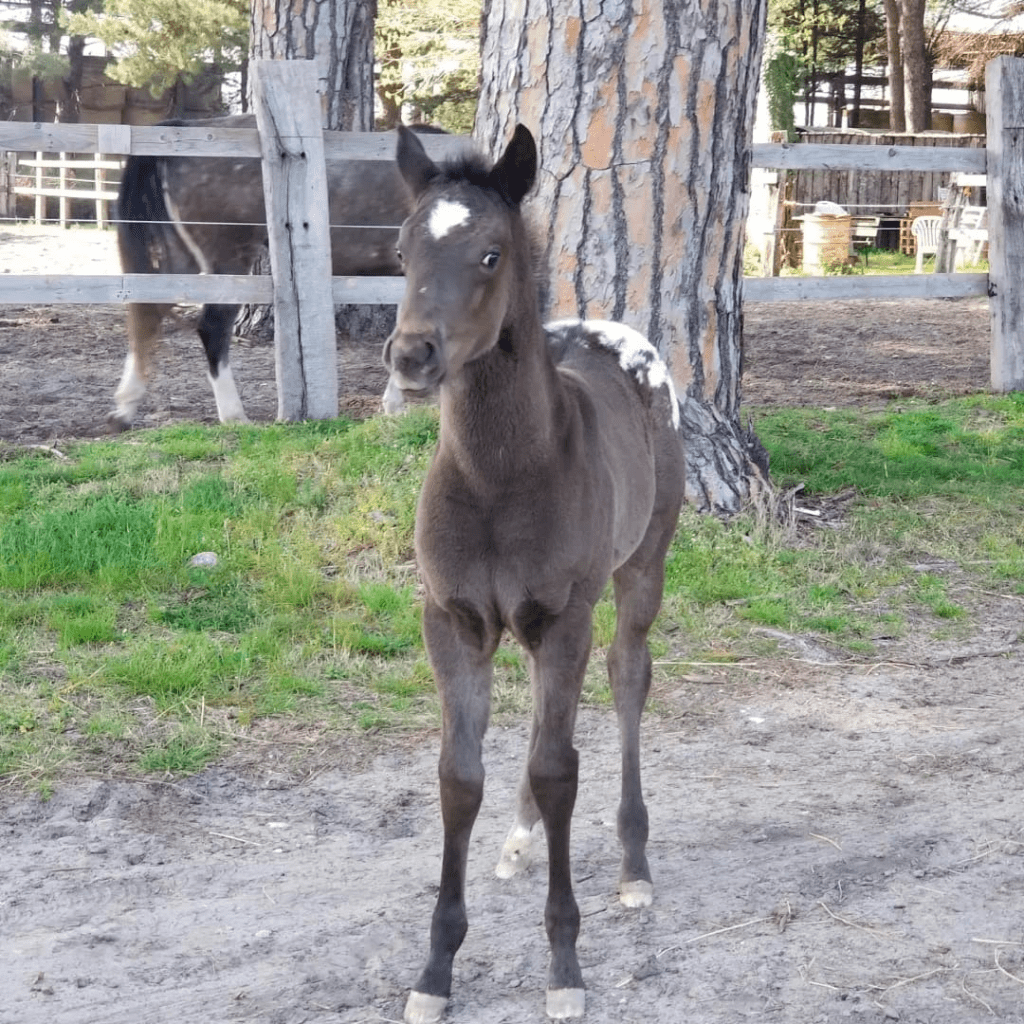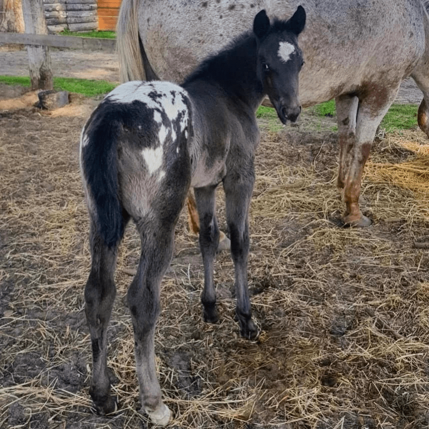 Puledra Appaloosa nera con coperta