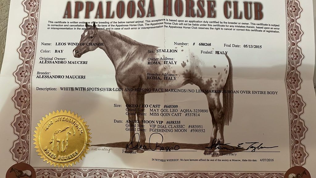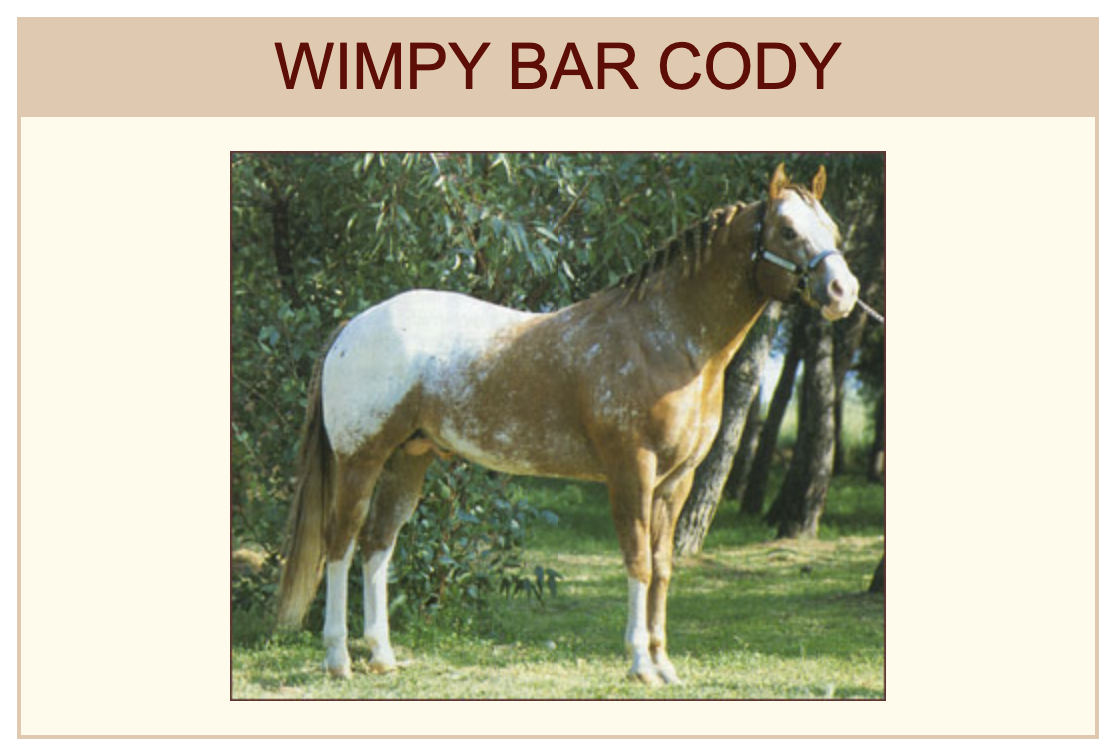 | Dam ANGEL MOON VIP APPALOOSA | Ex FGJSHINING MOON 1998 APPALOOSA Granddaughter of WIMPY BAR CODY ![]() |