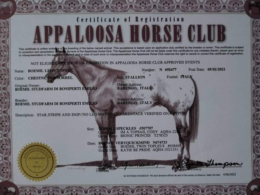 | Sire TOPSAIL SPECKLES ![]() rd ro leopard 1991 APPALOOSA Aphc 507707 1994 Futurity Appaloosa Champiom 1995 Itaian Champion Reining AIA European Champion Junior Reining 3°IRHA Novice Horse Open Carmagnola 1999 Last Run Voghera Grand Champion Open 2001 Reserve Champion APCR Novice Rider 2004 Vincitore campionato a Squadre APCR Jackpot Reining Open Munich-Vaterstetten 5th Place 2005 International Year-End High Point Earner Register of merit Senior Reining Open | By IM A TOPSAIL CODY ![]() dk ch 1984 QUARTER HORSEAQHA # |