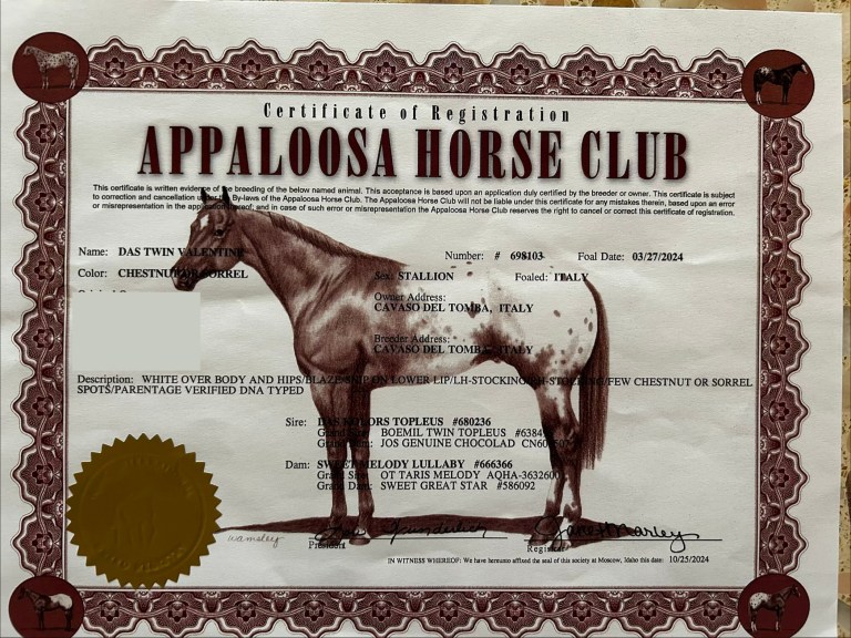 | Sire DAS KOLORS TOPLEUS | By BOEMIL TWIN TOPLEUS ![]() rd ro leopard 2005 APPALOOSA Aphc 638495 leopard 2008 first European futurity Appaloosa open champion 215,5! 2008 AIA reining futurity open champion 2009 lr intermediate open 4 place 2009 AIA MATURITY OPEN CHAMPION 2009 ERAA FUTURITY OPEN 3 PLACE 70,5! 2009 IRHA Challenge Futurity, Open Intermediate Open, Finalist 216! 2009 APA Maturity Champion; 2009 4-year-old futurity, IRHA intermediate open, 4th place, 217,5! 2010 IRHA NRHA DERBY open and intermediate open finalist, winner of the first go intermediate open 219! AIA maturity open reining champion! 2011 IRHA maturity champion L2 L3 L4 open |